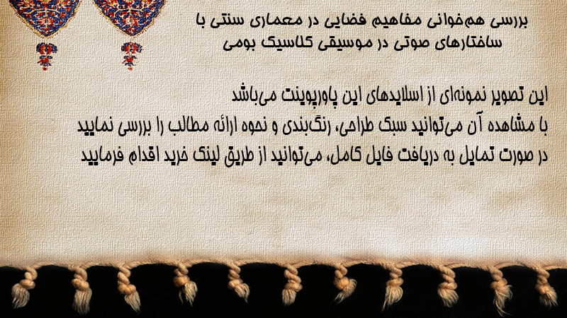 پاورپوینت بررسی همخوانی مفاهیم فضایی در معماری سنتی با ساختارهای صوتی در موسیقی کلاسیک بومی