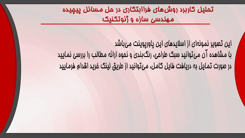 پاورپوینت تحلیل کاربرد روشهای فراابتکاری در حل مسائل پیچیده مهندسی سازه و ژئوتکنیک