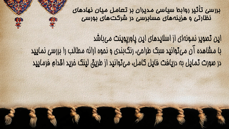پاورپوینت بررسی تأثیر روابط سیاسی مدیران بر تعامل میان نهادهای نظارتی و هزینههای حسابرسی در شرکتهای بورسی