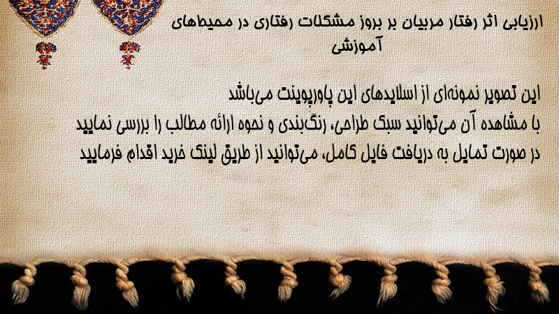 پاورپوینت ارزیابی اثر رفتار مربیان بر بروز مشکلات رفتاری در محیطهای آموزشی