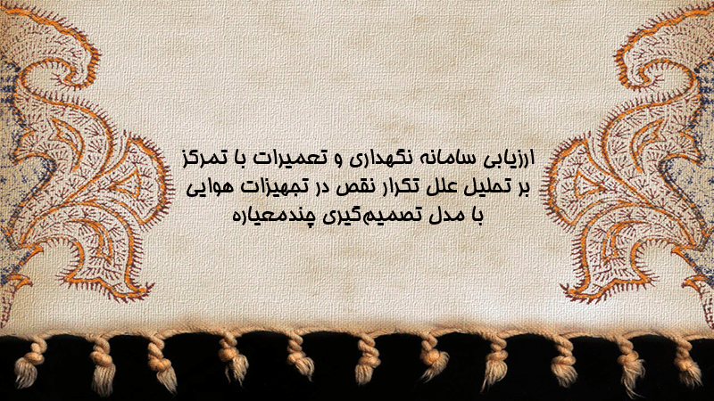 پاورپوینت ارزیابی سامانه نگهداری و تعمیرات با تمرکز بر تحلیل علل تکرار نقص در تجهیزات هوایی با مدل تصمیمگیری چندمعیاره