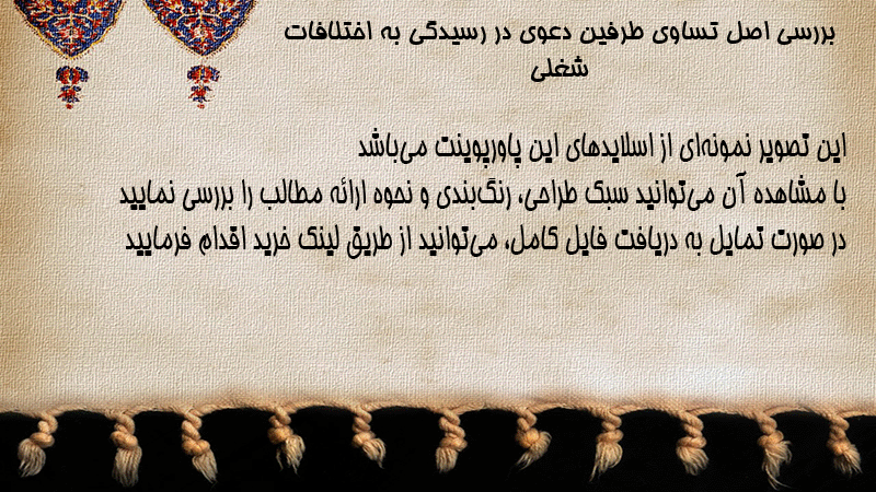 پاورپوینت بررسی اصل تساوی طرفین دعوی در رسیدگی به اختلافات شغلی