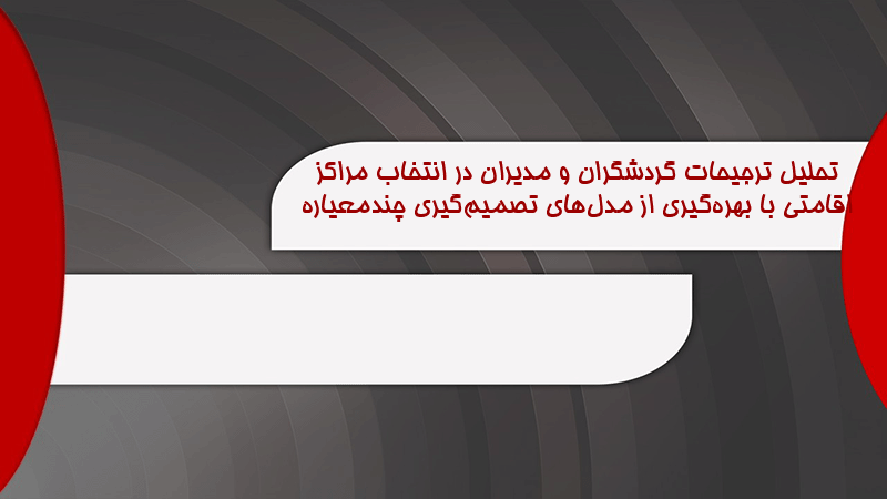 پاورپوینت تحلیل ترجیحات گردشگران و مدیران در انتخاب مراکز اقامتی با بهرهگیری از مدلهای تصمیمگیری چندمعیاره
