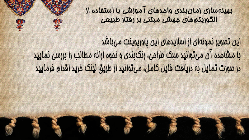 پاورپوینت بهینهسازی زمانبندی واحدهای آموزشی با استفاده از الگوریتمهای جهشی مبتنی بر رفتار طبیعی