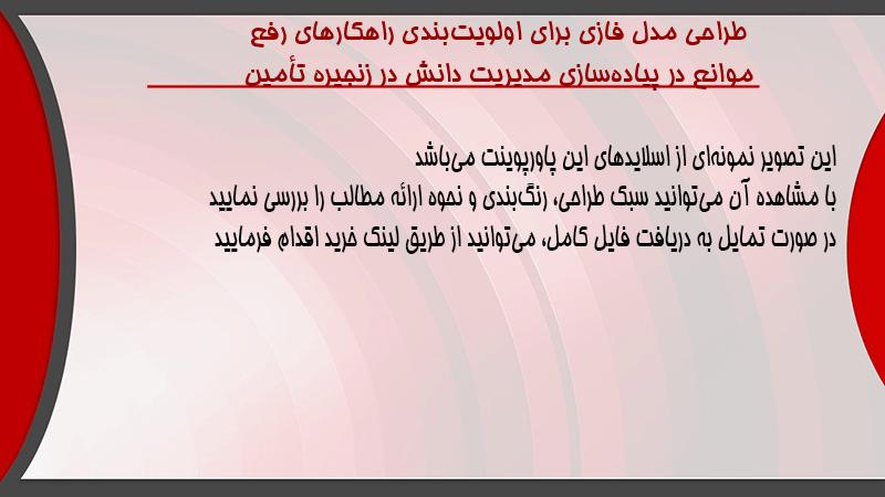 پاورپوینت طراحی مدل فازی برای اولویتبندی راهکارهای رفع موانع در پیادهسازی مدیریت دانش در زنجیره تأمین