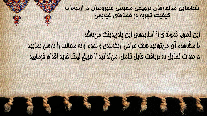 پاورپوینت شناسایی مؤلفههای ترجیحی محیطی شهروندان در ارتباط با کیفیت تجربه در فضاهای خیابانی