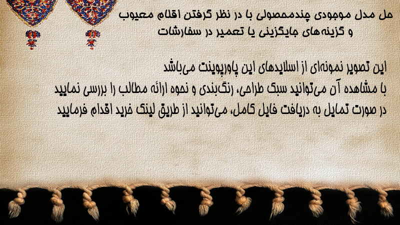 پاورپوینت حل مدل موجودی چندمحصولی با در نظر گرفتن اقلام معیوب و گزینههای جایگزینی یا تعمیر در سفارشات